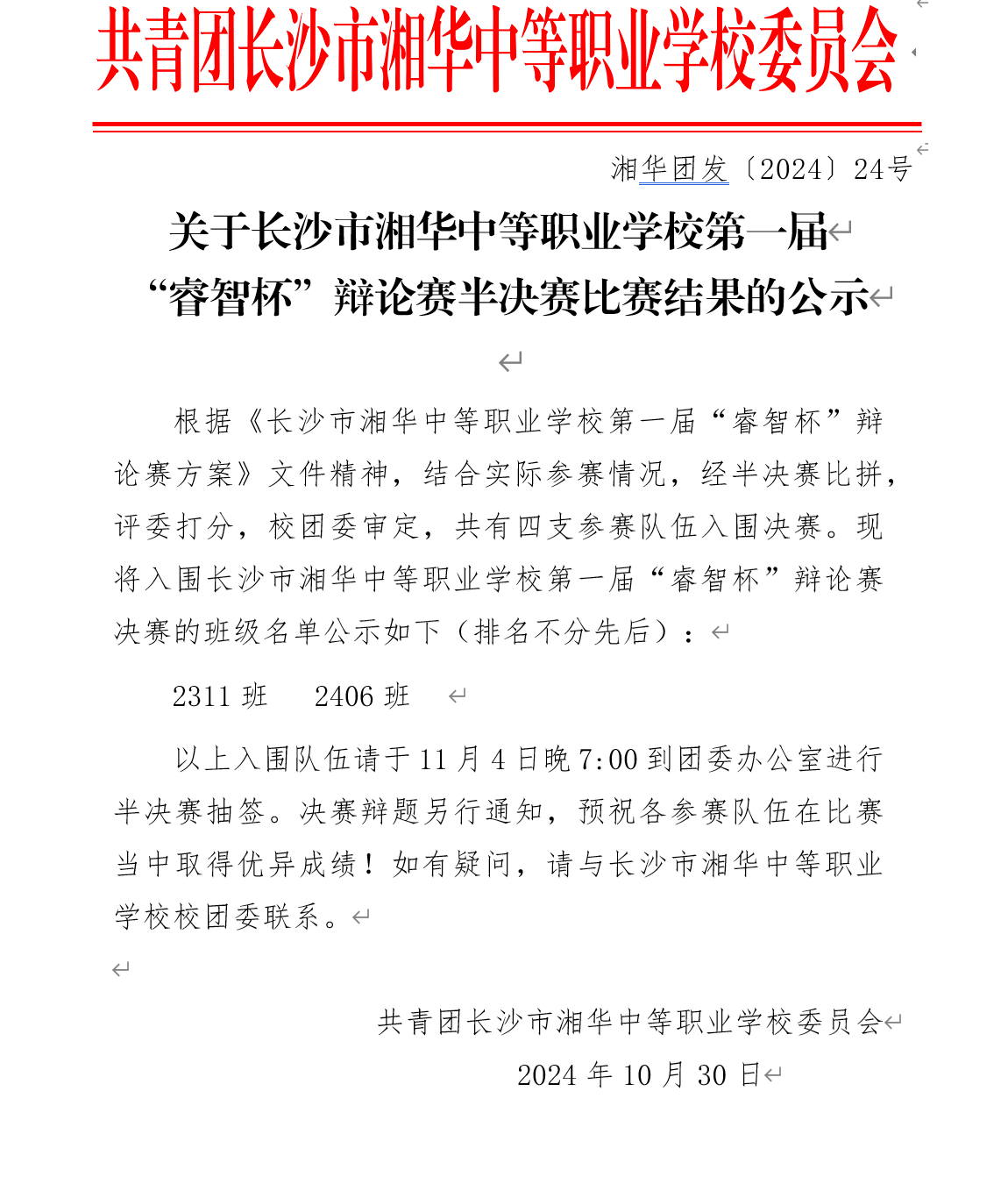 长沙市湘华中等职业学校第一届“睿智杯”辩论赛半决赛比赛结果
