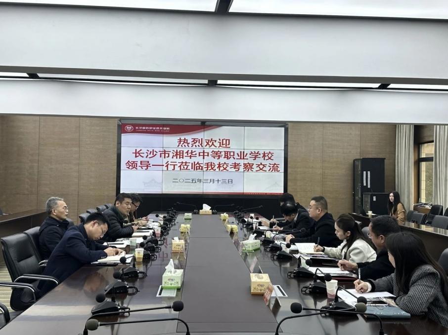 为进一步加强中高职交流与合作,助推我校高质量发展和职业教育教学水平提升,3月13日下午,长沙市湘华学校(下称“湘华学校”)董事长何凯率由校领导班子组成的交流团,前往长沙民政职业技术学院(下称“民政职院”)开展交流学习活动。长沙民政职业技术学院党委委员、副校长张国辉率相关部门负责人热情接待了我校交流团成员。